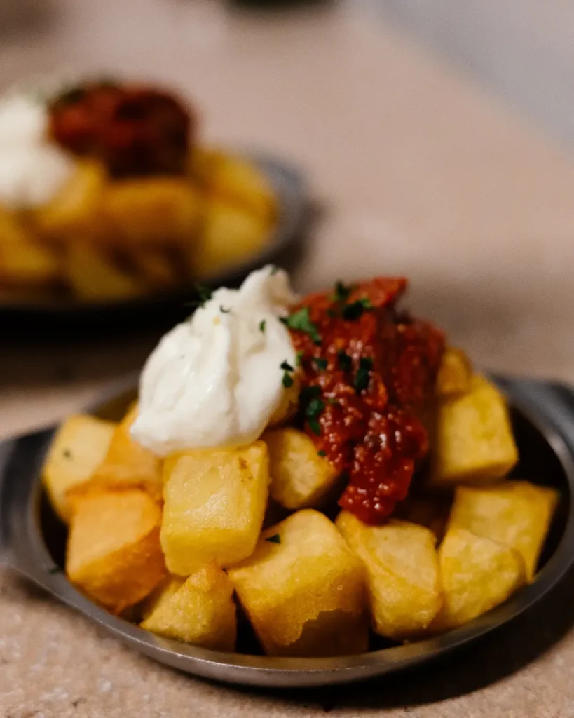 Si te apetece una versión distinta, Café Comercial propone unas bravas más cercanas al estilo catalán, con doble salsa: alioli y salsa brava, en un local histórico que nunca decepciona. Para algo más rompedor, Rosi La Loca ofrece una propuesta moderna, visualmente potente y con patatas ultracrujientes gracias a la doble fritura, en un local que no deja indiferente.