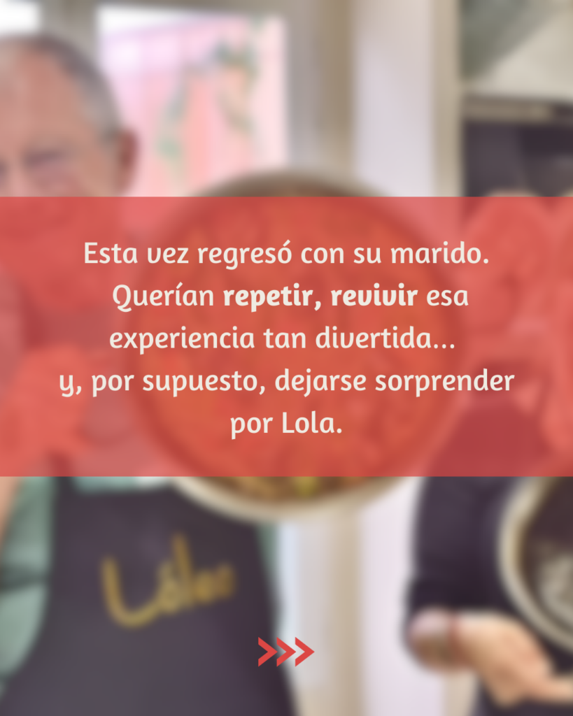- No es una clase aburrida: Es una fiesta alrededor de los fogones con nuestra Chef Lola (¡y su playlist!).